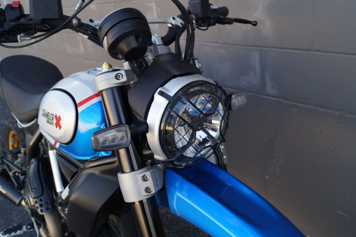 Great looking 1-owner Desert Sled finished in Sparkling Blue with gold rims and optioned with Ducati heated grips, a Leo Vance exhaust, New Rage Cycles fender eliminator license plate mount, LED lights. Extremely low miles on this like-new machine. Save yourself some cash and enjoy a fun dual sport that can go places bigger adventure bikes can't. Whether it's pavement, gravel, dirt, or anything else you desire, this bike is your ticket to fun.
