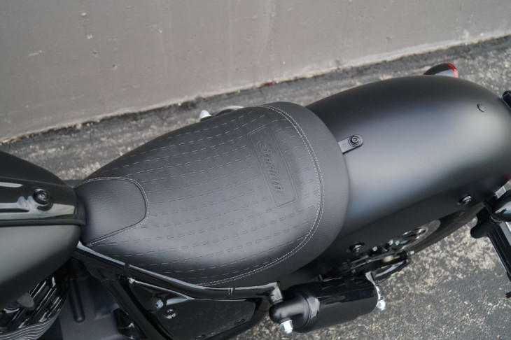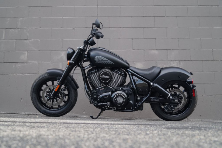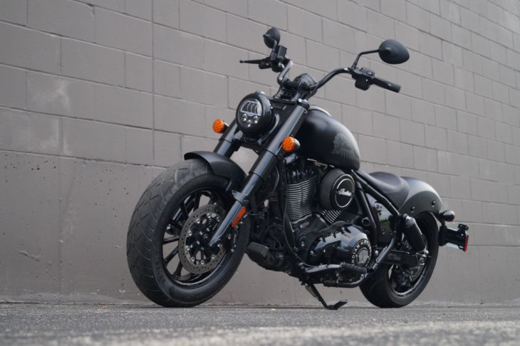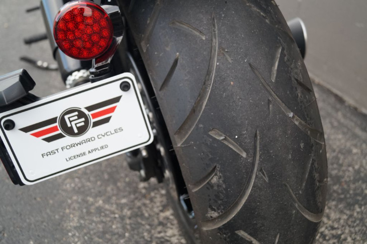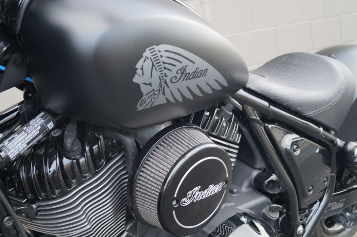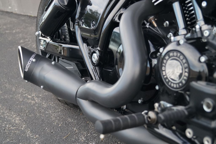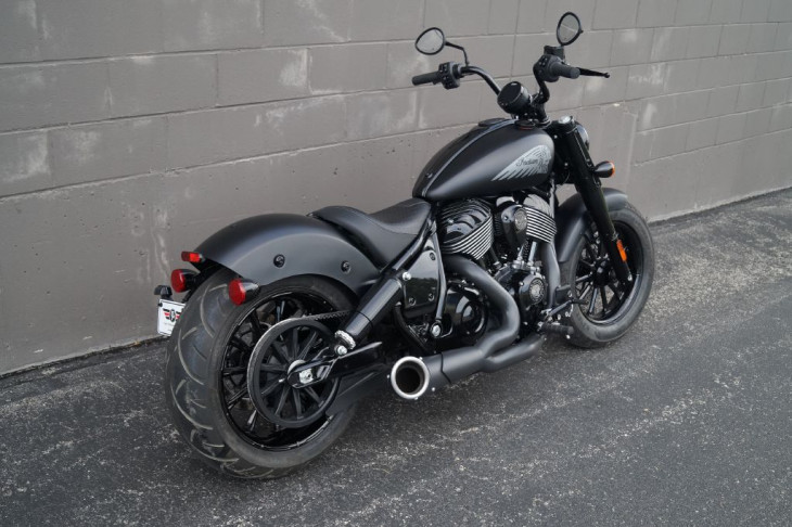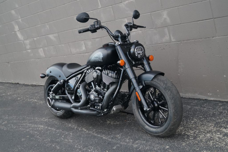 Super good looking Chief Bobber Dark Horse wearing a custom set of black alloy rims in place of the traditional spoke rims this model comes with and the rear tire was widened to a 200mm in the process. A Freedom Performance 2-into-1 turn out exhaust makes a beautiful note and bumps up the performance of this light weight rocket ship as well. A stage 1 tune and a performance air cleaner round out the performance end while an LED headlight and 2 inch reach pegs make for a better experience atop this fun bike. Very clean, low mileage, 1-owner. Don't sleep on this one.