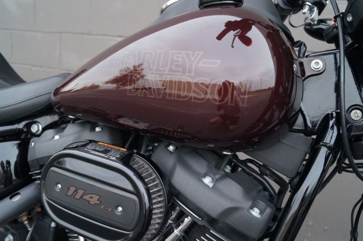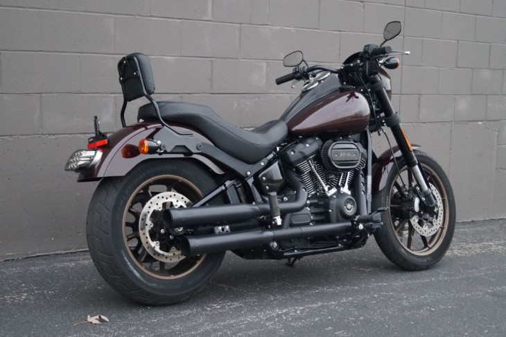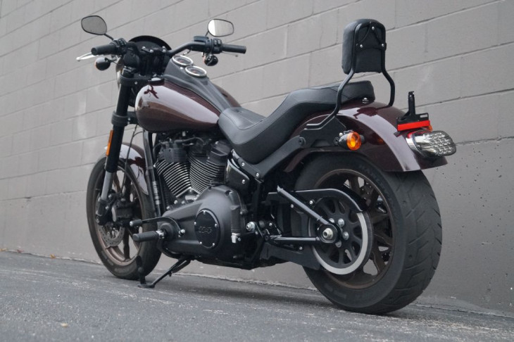 Well kept one-owner Low Rider S finished in Midnight Crimson and Harley's blackout treatment on the motor, transmisison, forks and strut covers, headlight and turn signals, etc. and rolling on factory gold rims. Performance is paramount with the 114ci Milwaukee 8 engine and a set of upside down forks mated to the new Softail frame. Upgraded Cobra exhaust and a 2-up Harley seat was added along with passenger pegs and a quick release backrest so you can bring your favorite person along. A smoked lense LED tail light was also added for extra style and both tires are brand new.